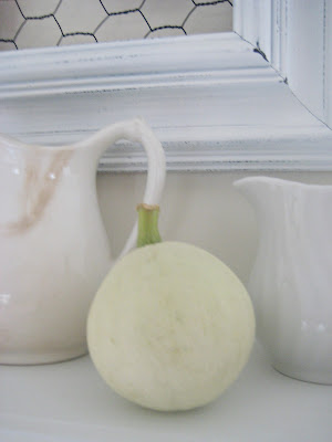 And finally to finish off the hutch, a touch of simplicity. You can't get more simple than a white bowl and a pumpkin. Simple? . . .yes. Stylish? . . . .you bet!