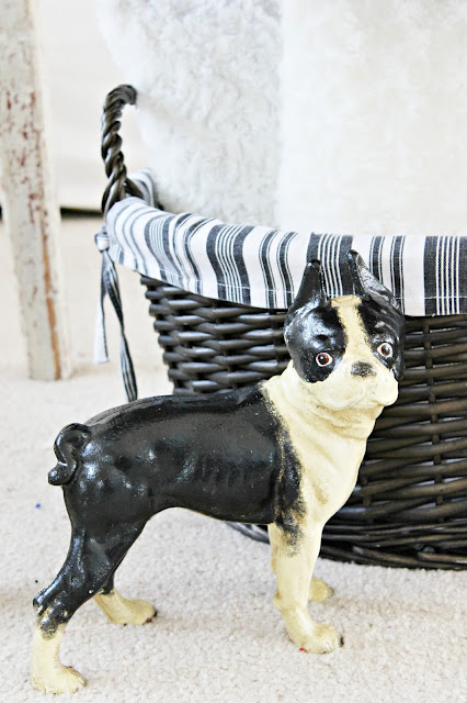 This adorable cast iron dog that my husband gave me a while back sort of became my inspiration for this room.